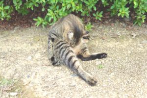 写真を撮る私に構うことなくマイペースに毛繕いをし続ける猫ちゃん。