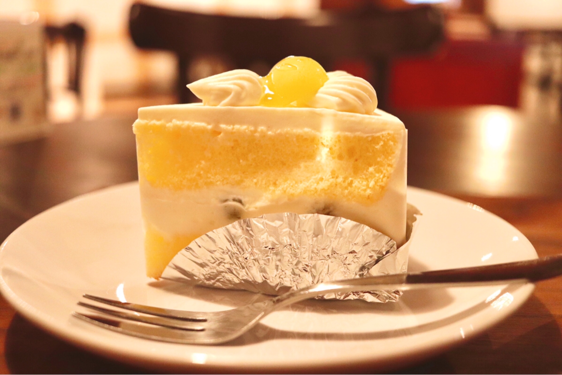 注文したのはシャインマスカットのショートケーキとカフェラテ。