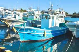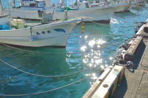 停泊している船に反射する光やはためく旗が、とてもきれいでした!