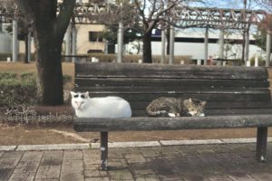 こちらはベンチで気持ちよさそうに寝ている猫ちゃんたち。
