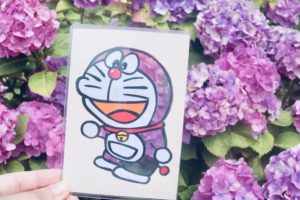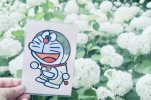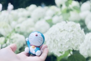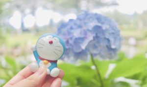 青の紫陽花とドラえもん!最近ドラえもんと一緒に景色を撮影することを失念しておりまして(笑)