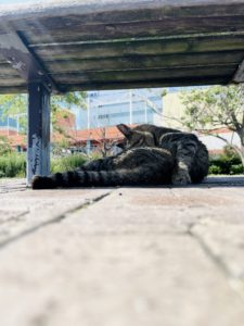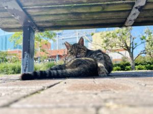 猛暑の昼下がり、木陰で猫ちゃんが休憩中でした